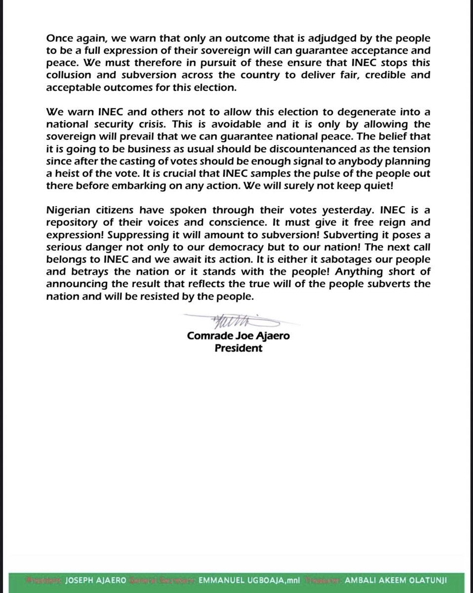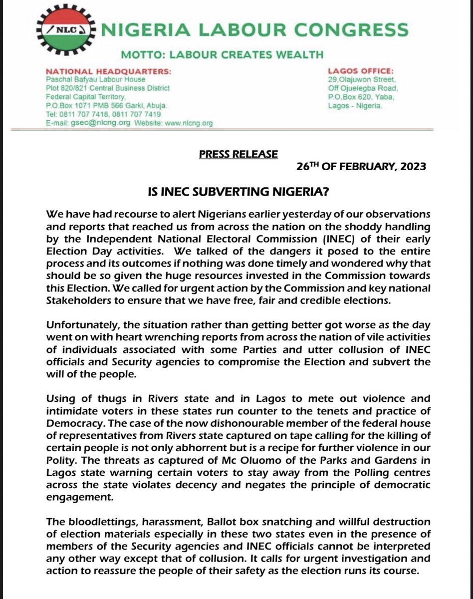 ear @inecnigeria, You have a mail from Nigeria Labour Congress. Don't mess with us. h