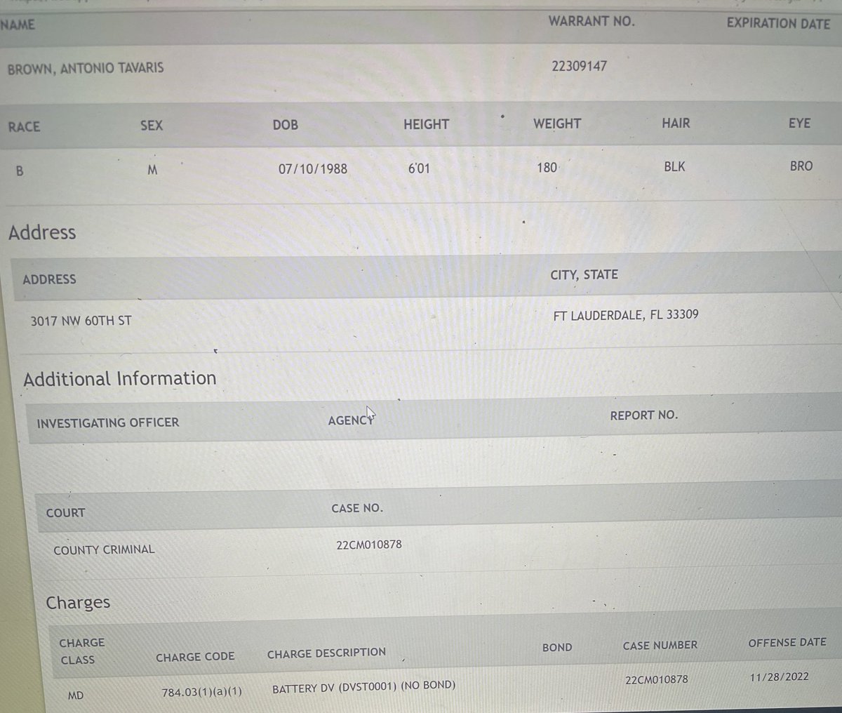 BREAKING REPORT: Arrest Warrant issued for former Bucs wide receiver Antonio Brown on BATTERY CHARGES in Florida..