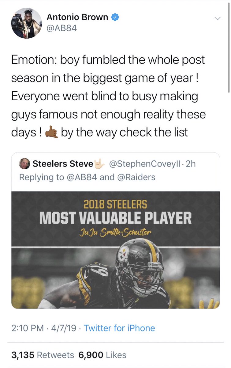 @TeamJuJu “Keep your emotions off the internet. - Antonio Brown” - JuJu Smith-Schuster