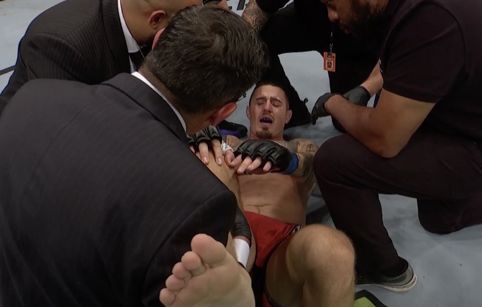 An unfortunate ending to the main event at #UFCLondon Curtis Blaydes wins as Tom Aspinall suffers a knee injury after 16 seconds.