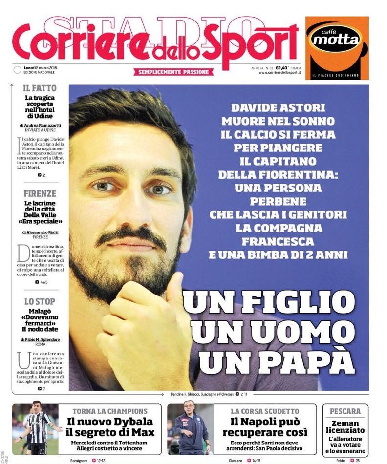 On this day of tragedy, Juventus expresses its deepest condolences to Davide Astori’s family and Fiorentina.