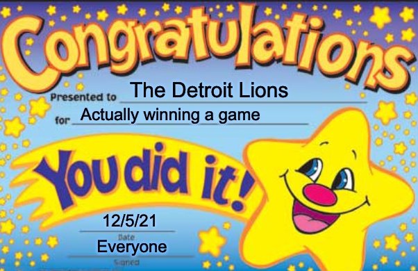 THE DETROIT LIONS HAVE WON A FOOTBALL GAME