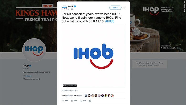 I'm less surprised about #IHOP becoming #IHOb and more surprised that Waffle House has rebranded as Wabble Hoube.