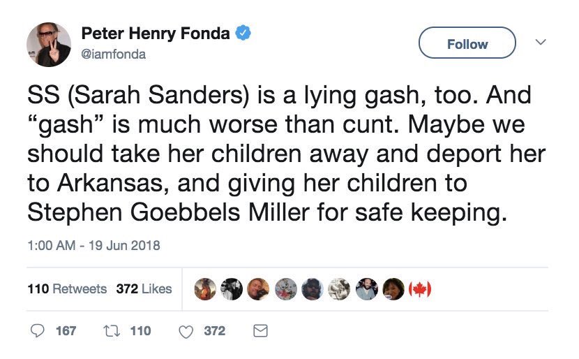 #PeterFonda said some truly vile, vulgar, misogynistic things today. Given recent history, he'll probably end up the @GOP nominee in 2020.