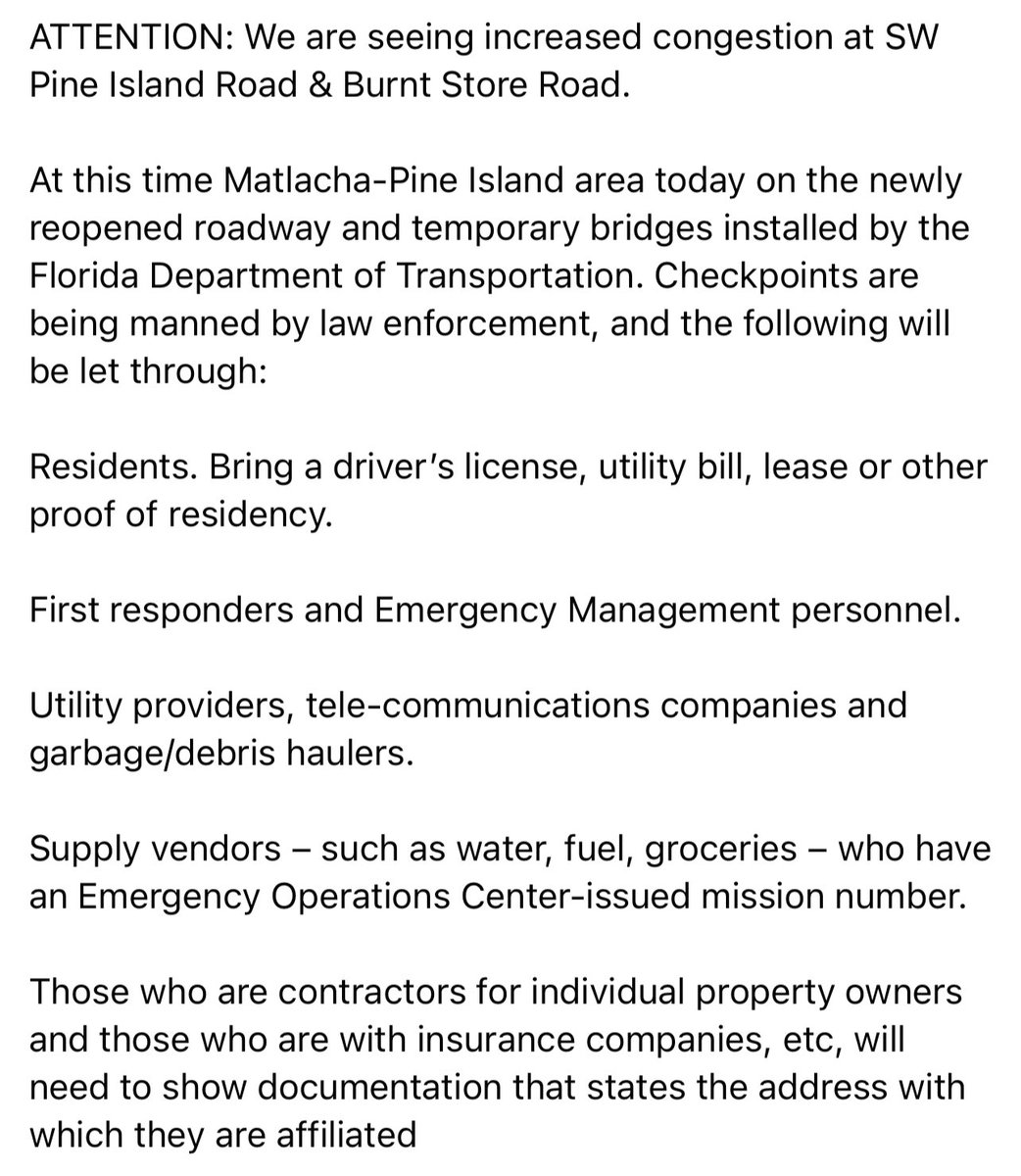 IF YOU ARE TRAVELING BACK ONTO MATLACHA-PINE ISLAND, PLEASE SEE BELOW