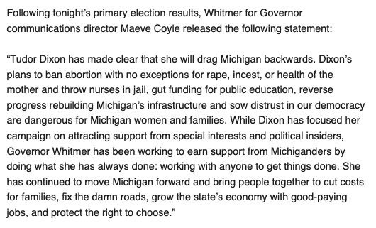 BREAKING NOW: Trump Endorsed Tudor Dixon wins Michigan Gubernatorial Primary, Will Face Gretchen Whitmer in November..